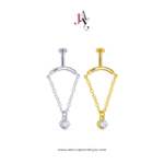(Pre-order) 14K Solid Gold Vertical Dangle Drop Chain Screw Flat Back (ราคาต่อชิ้น)