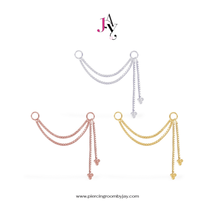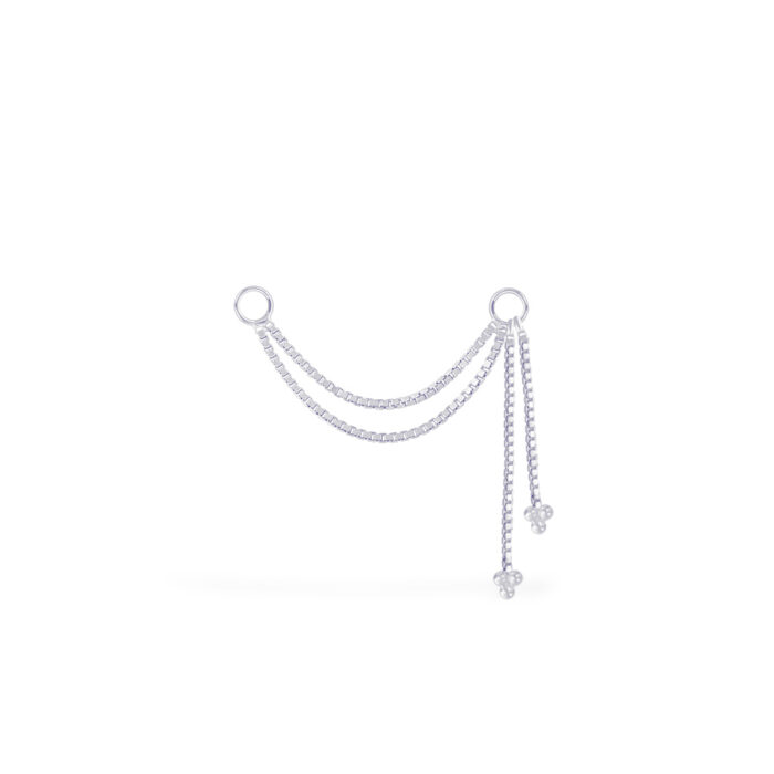 Trinity Ball Dangle Cartilage Double Box Chain เงินแท้ (ราคาต่อชิ้น)