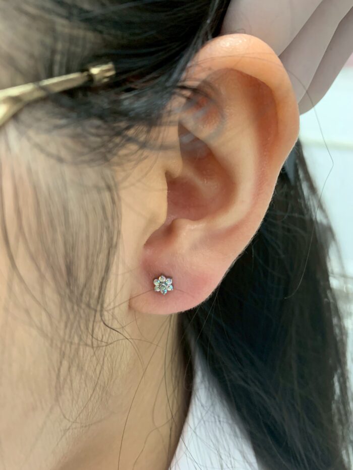 Flower CZ (AB) Titanium Flat back เกรดการแพทย์ (ราคาต่อชิ้น)